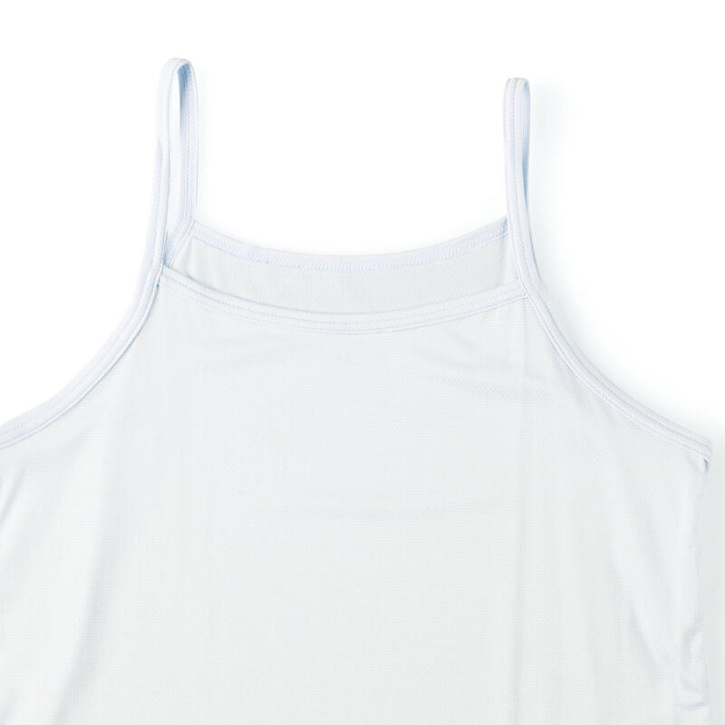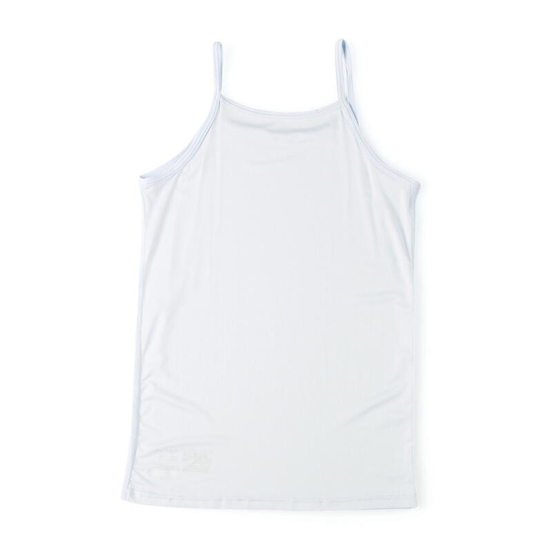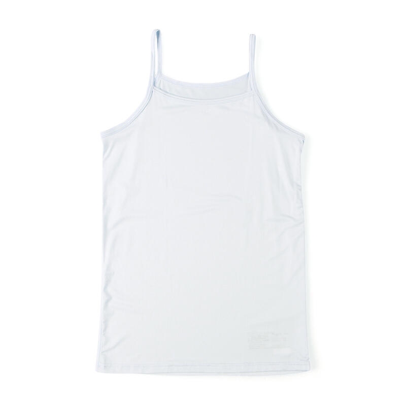 トップスにひびきにくいキャミソール仕様、衿元高めのデザインで安心して着られます。