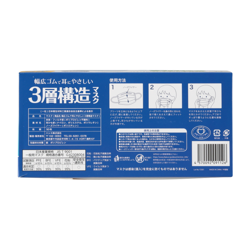 ウイルス飛沫・バクテリア・PM2.5・花粉99%カットフィルタ使用、毎日の対策に。