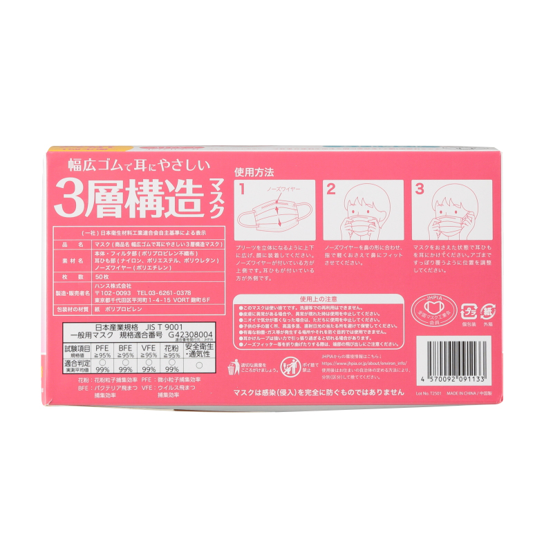 幅広6mm平ゴムひもで耳にやさしい仕様です。