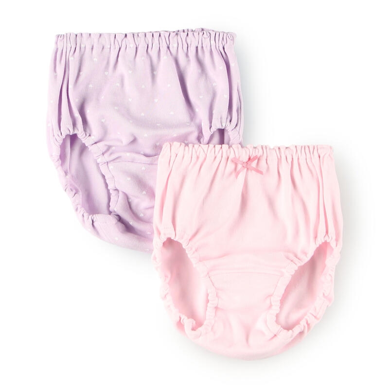 ハート柄と無地タイプがセットのベーシックな2枚組ショーツ。