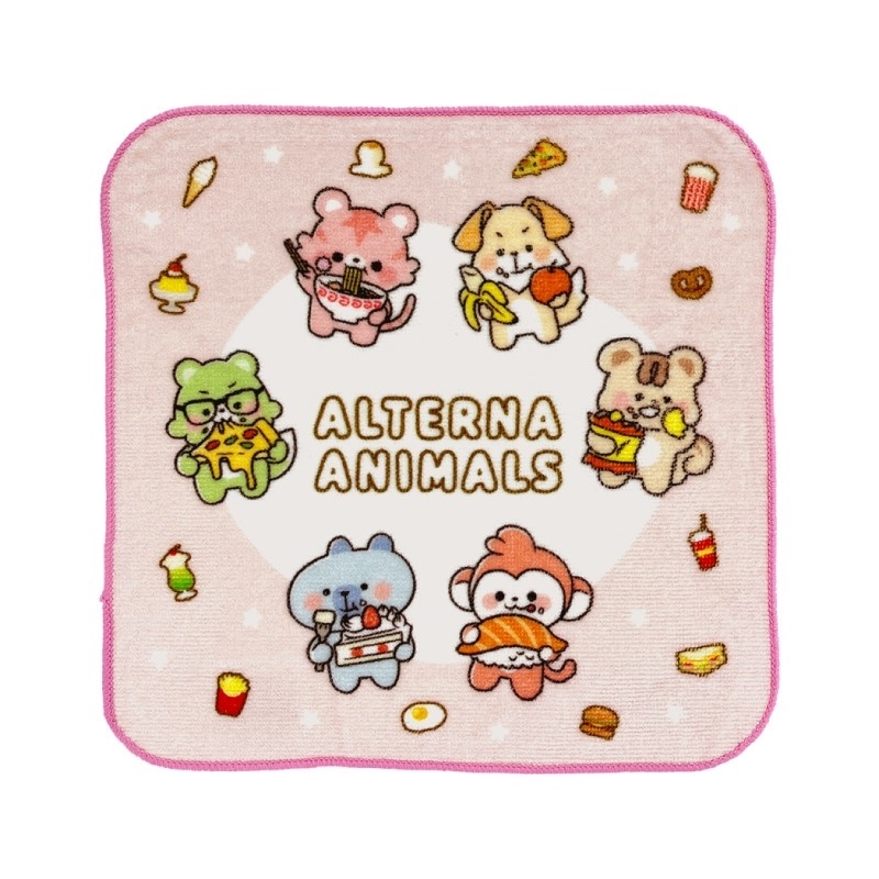 大食いのおるたなアニマルズがデザインされたかわいいハンドタオルです。是非色々なシーンで使ってください