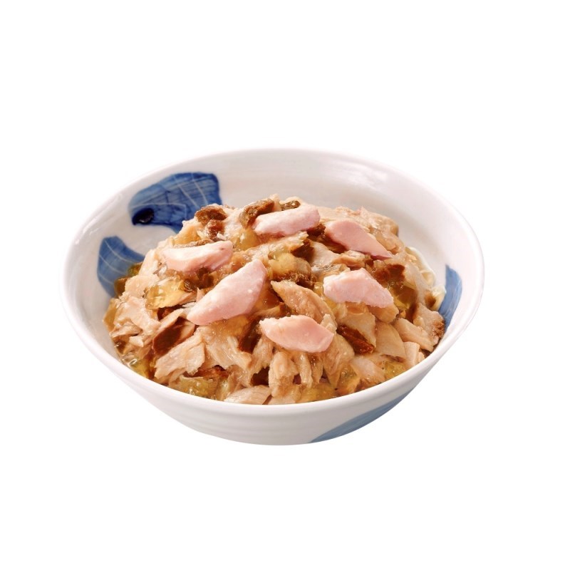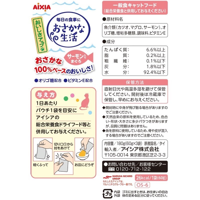 - 魚介類(カツオ、マグロ、サーモン)、オリゴ糖、増粘多糖類、調味料、ビタミンE