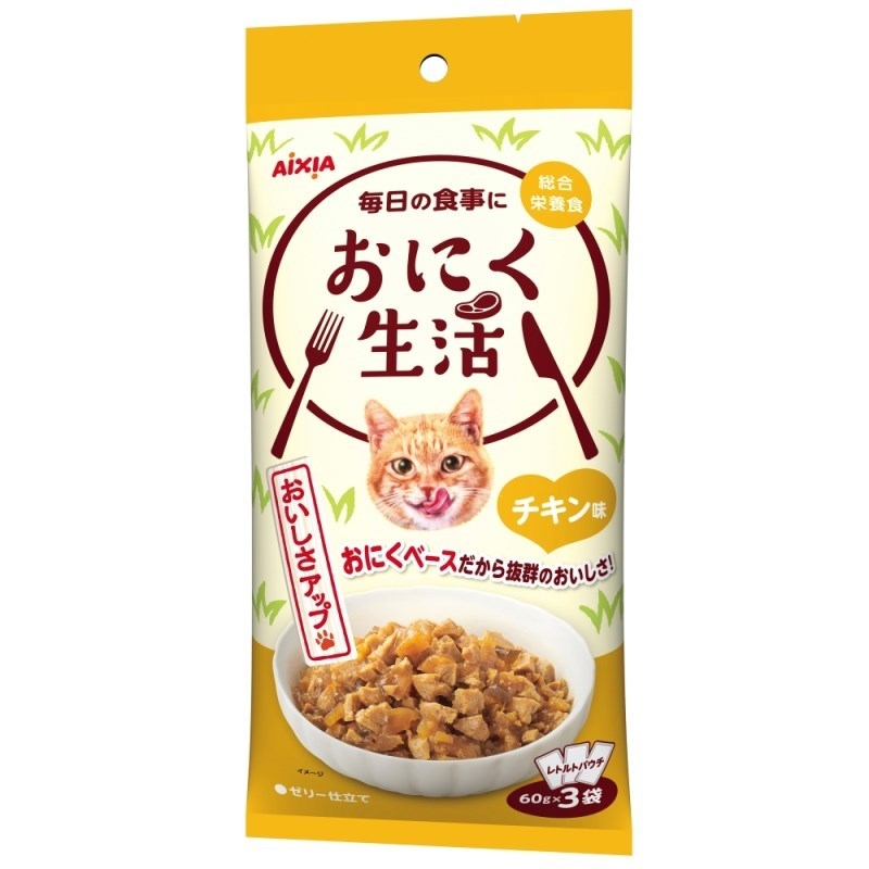 - 肉類(鶏肉、牛レバー、チキンエキス)、小麦たんぱく、エンドウたんぱく、油脂類(ひまわり油、鶏脂)