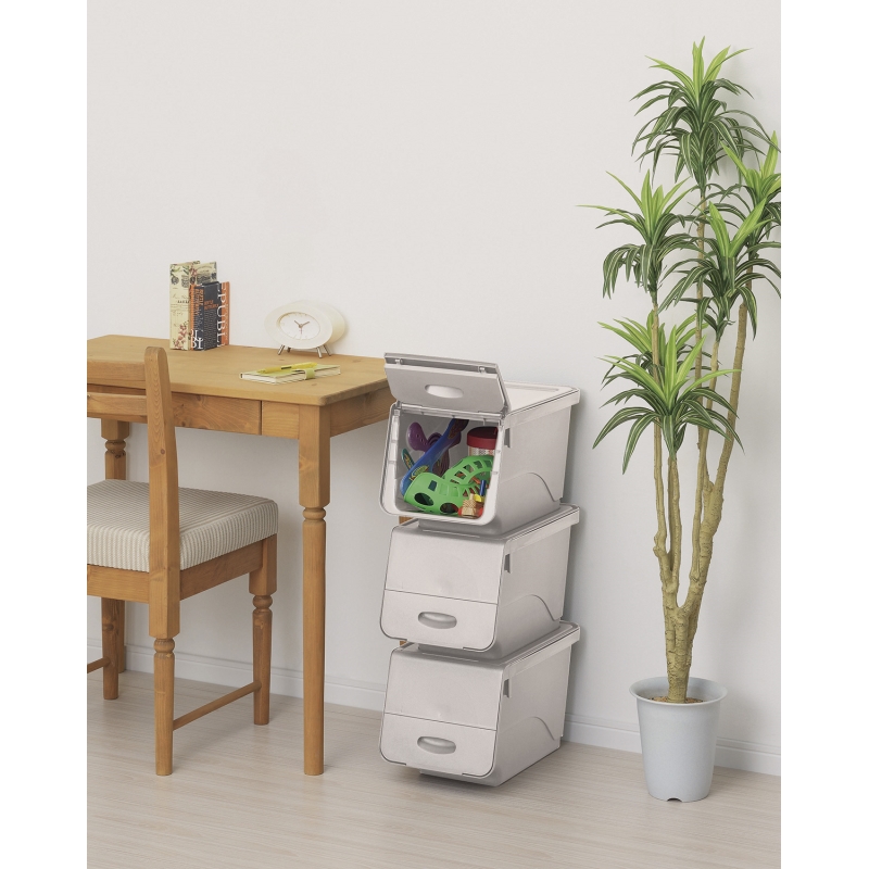 積み重ねした状態でもフタの開閉が可能なので、出し入れが簡単。