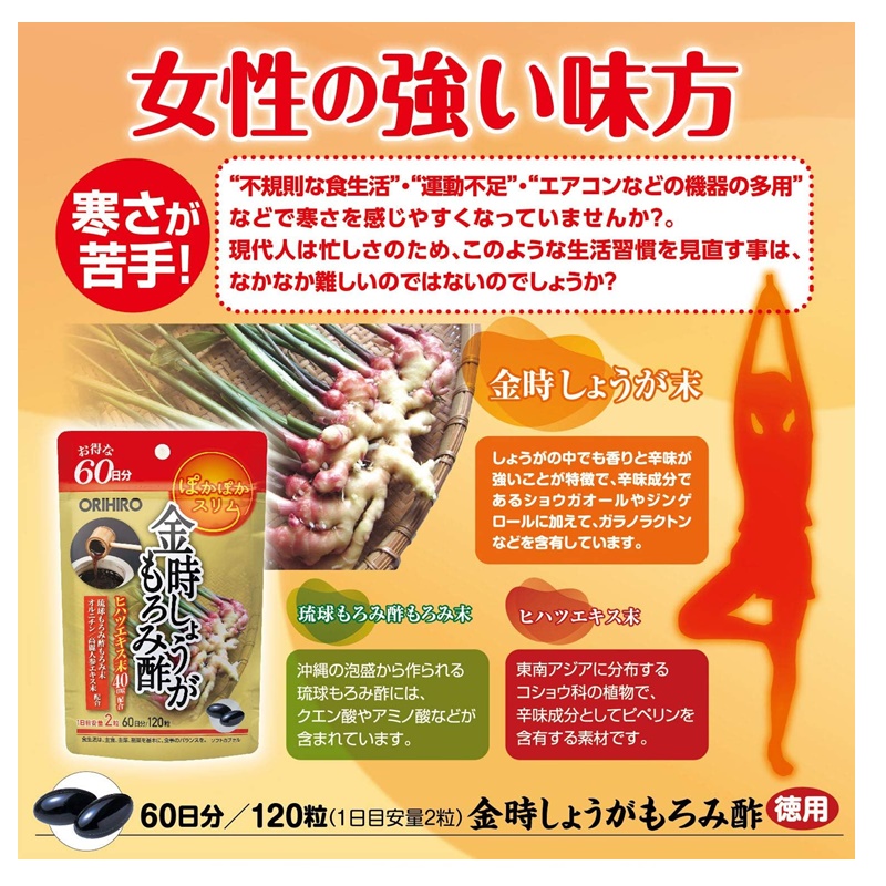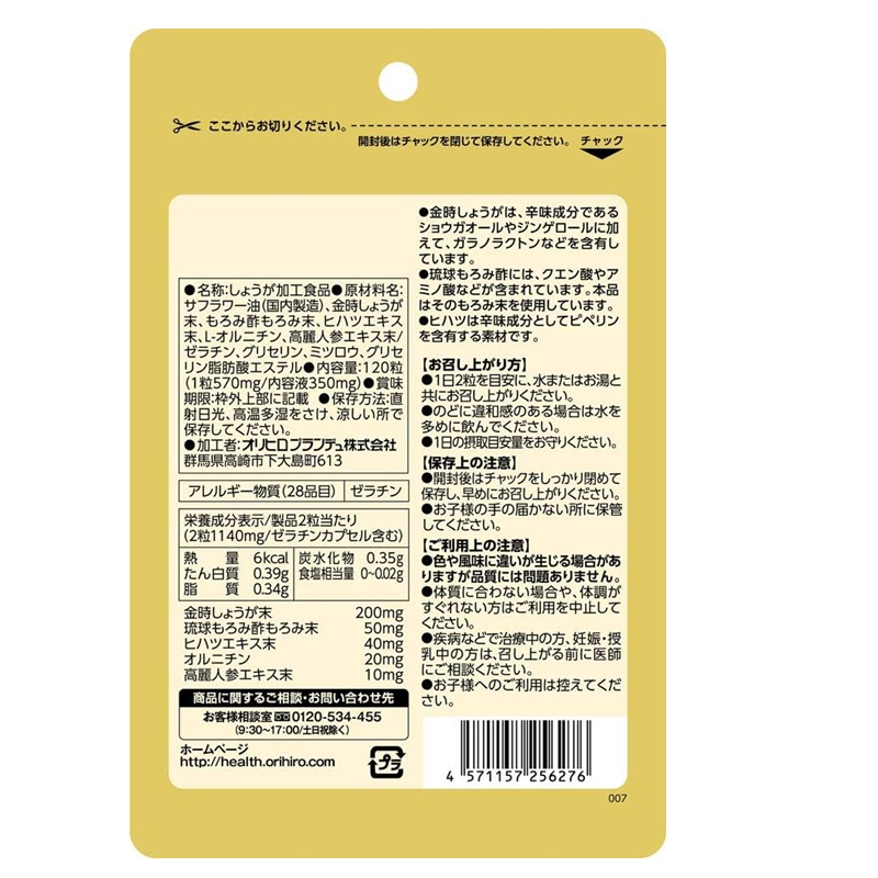 金時しょうがの働きをサポートするヒハツエキスの他、オルニチン、高麗人参も配合しました。