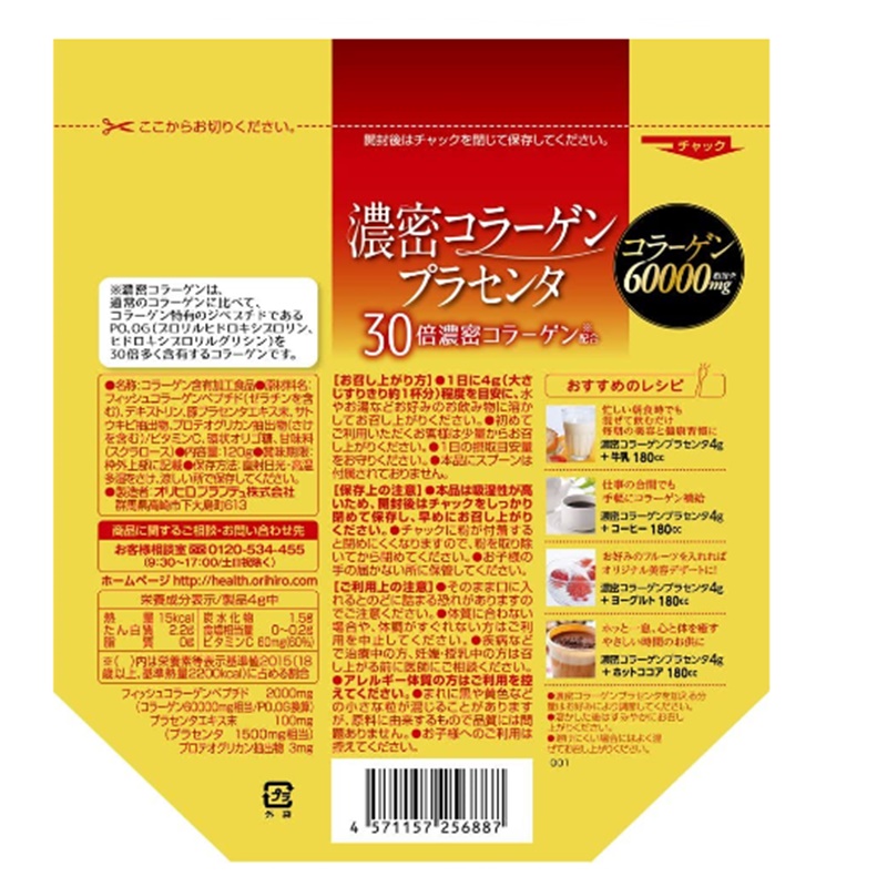 濃密コラーゲンは、通常のコラーゲンに比べてPO、OGを30倍多く含有するコラーゲンですので、圧巻のコラーゲン