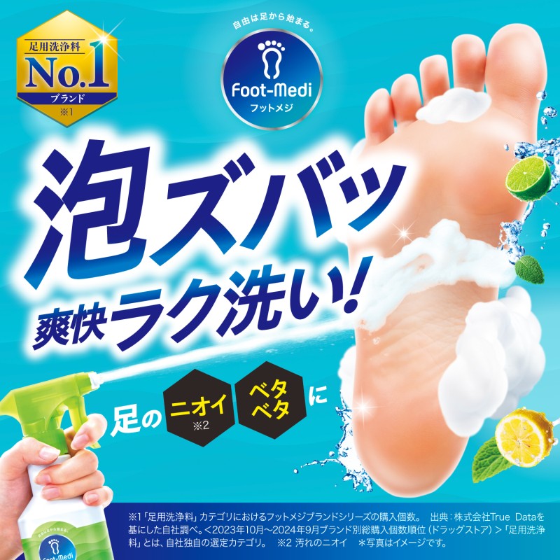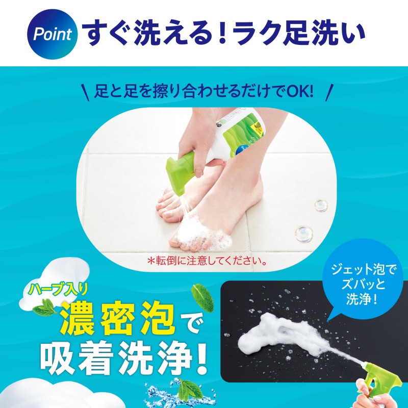 ●30秒ラク洗いするだけで簡単にフットケアができる「ジェット泡足洗いソープ」です。