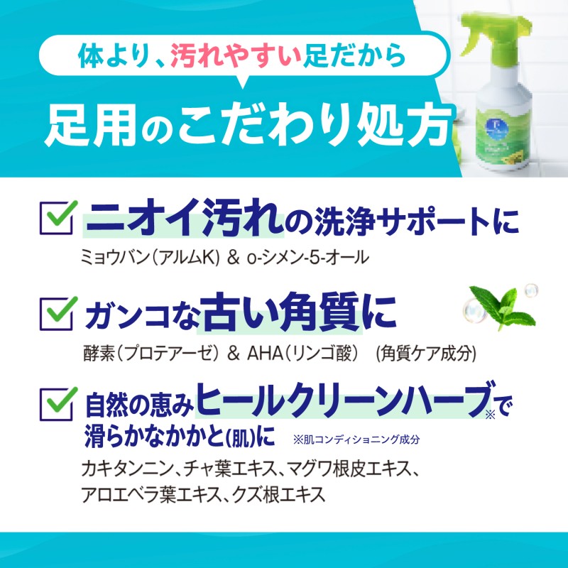 ●泡立て不要のスプレータイプだからズバッと足指の間にも直撃。