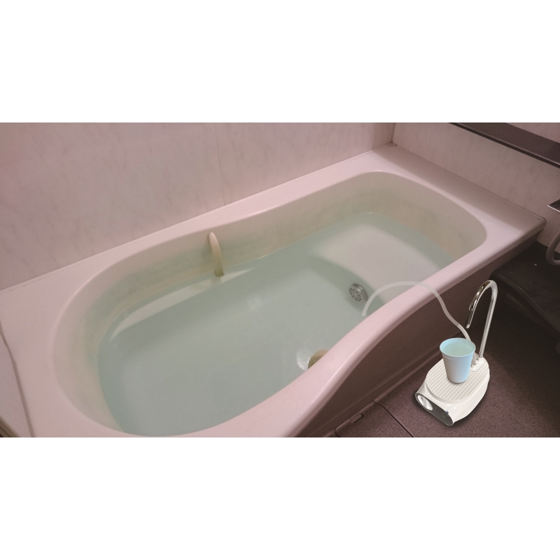 本製品は除菌性能と充電機能で、断水時でもお風呂の水、井戸水、水洗トイレのタンクの水などを飲み水としてお使いいただけます。