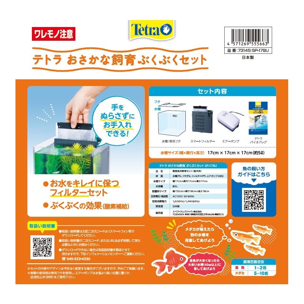 ・ビギナーでも手軽に金魚、メダカが飼育できる17cm角の小型水槽セットです。