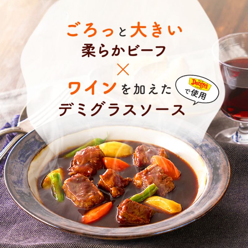 デニーズの特製ソースで仕込んだデミハンバーグ 185g×2食、ビーフシチュー 210g×2食、