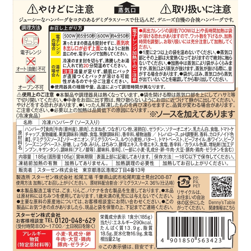 デニーズの特製ソースで仕込んだデミハンバーグ 185g×2食、
