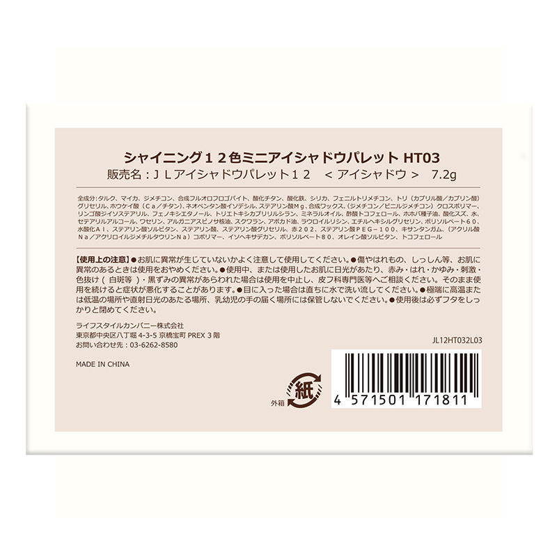 ジルリーン シャイニング 12色 ミニアイシャドウパレット HT03
