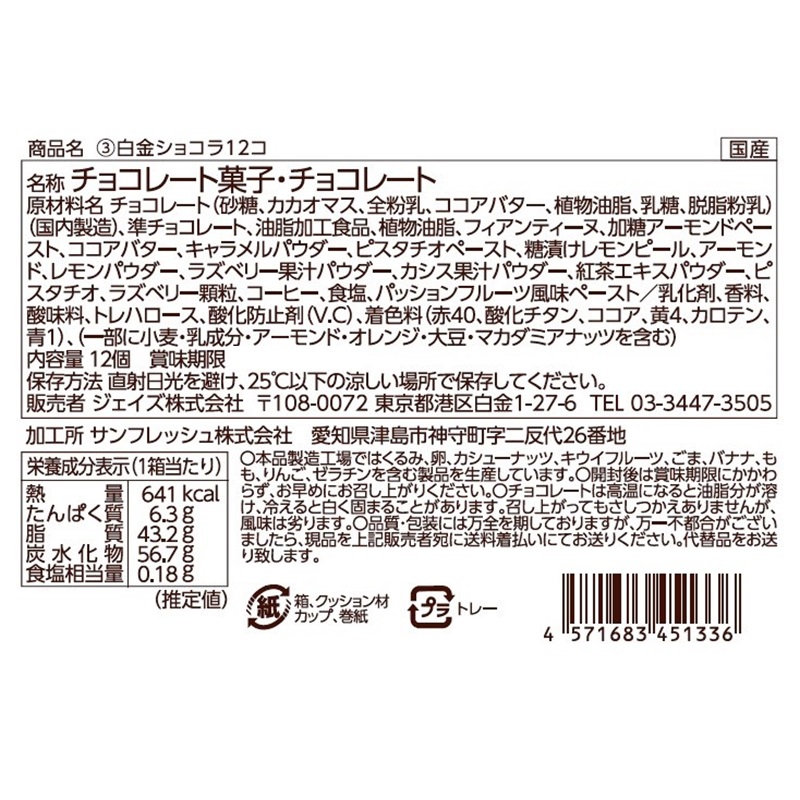 ナッツやフルーツ味などのチョコレートを詰め合せたギフト