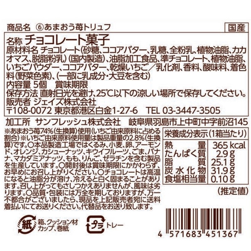 あまおう苺のガナッシュを使用したトリュフのアソート