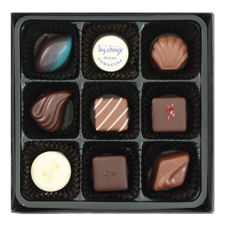 サクサクのフィアンティーヌ入りや、さわやかなフルーツ味などのチョコレートを詰め合せたギフト