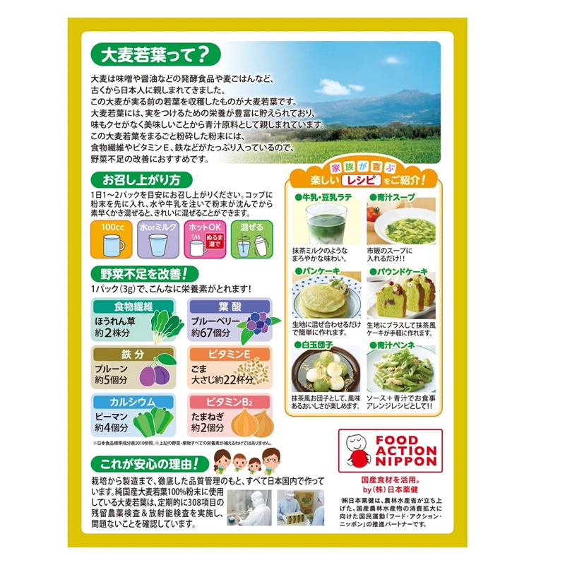 契約農家の手で無農薬栽培された国産の大麦若葉を惜しみなく100%配合!