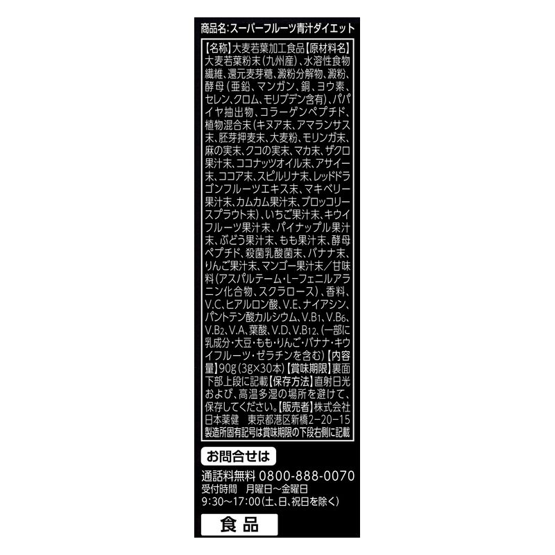 九州産大麦若葉を使用し、15種のスーパーフルーツ&スーパーフードを配合。