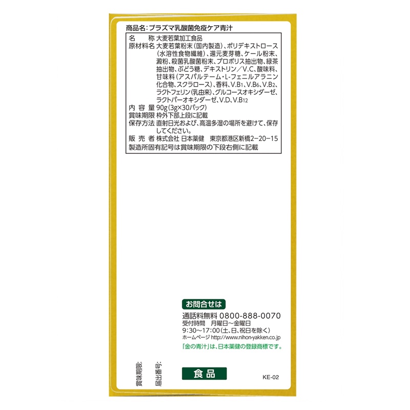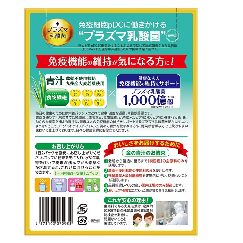 免疫機能の維持が気になる方に、プラズマ乳酸菌を配合した青汁です。