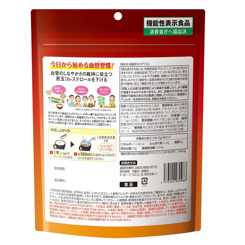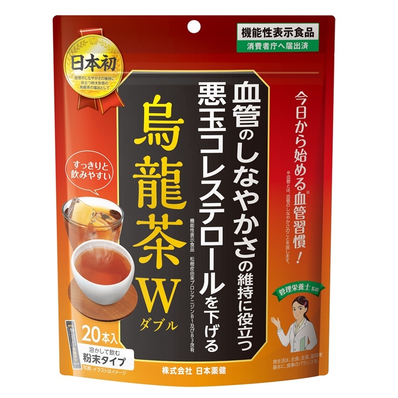 日本初の、血管のしなやかさの維持に役立つ松樹皮由来プロシアニジンB1及びB3を配合した、溶かして飲む粉末タイプの烏龍茶の