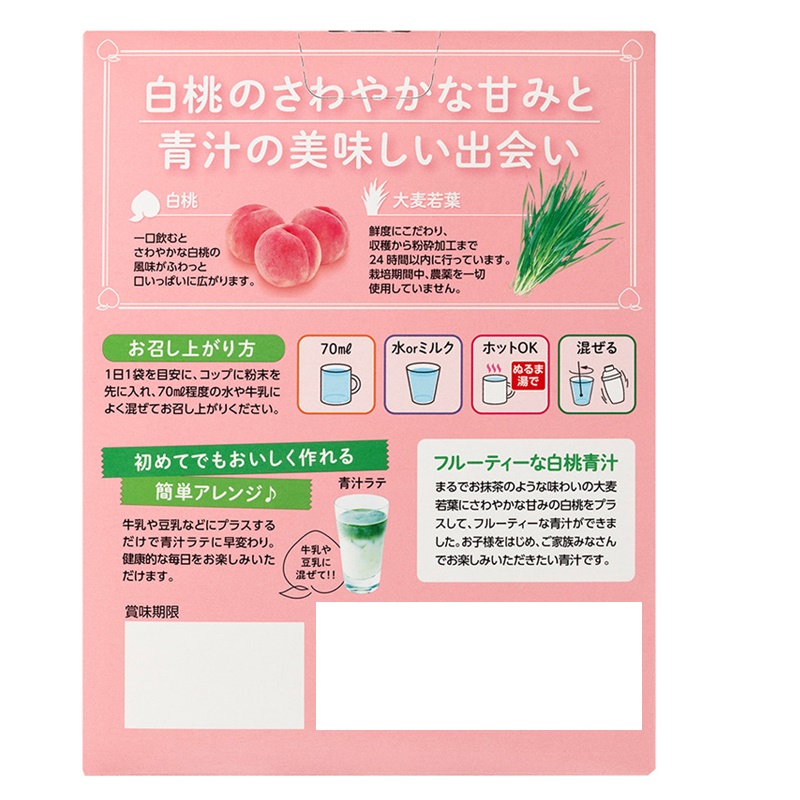 純国産の大麦若葉と白桃を使用しています。