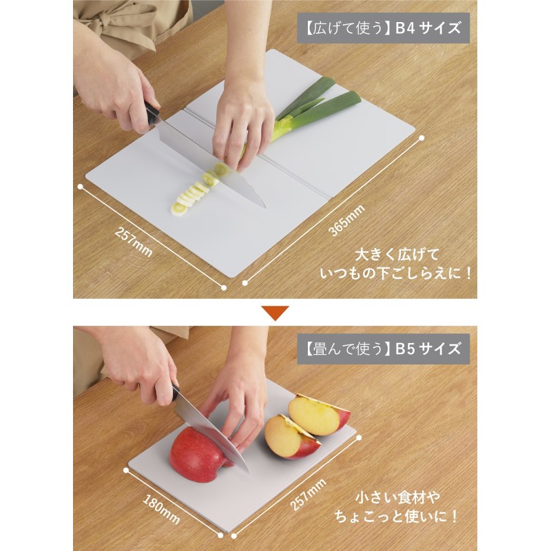 抗菌仕様。立てて乾かせる、折り曲げて切った食材を鍋やフライパンにサッと入れられる。