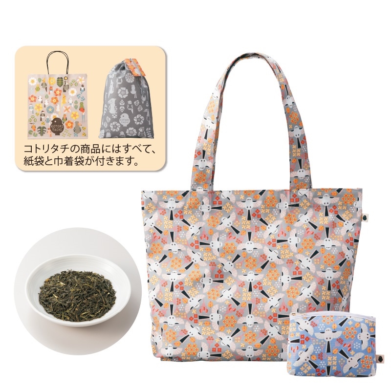 桜煎茶×1、スクエアテキスタイルバックL×1、限定綿ポーチ×1