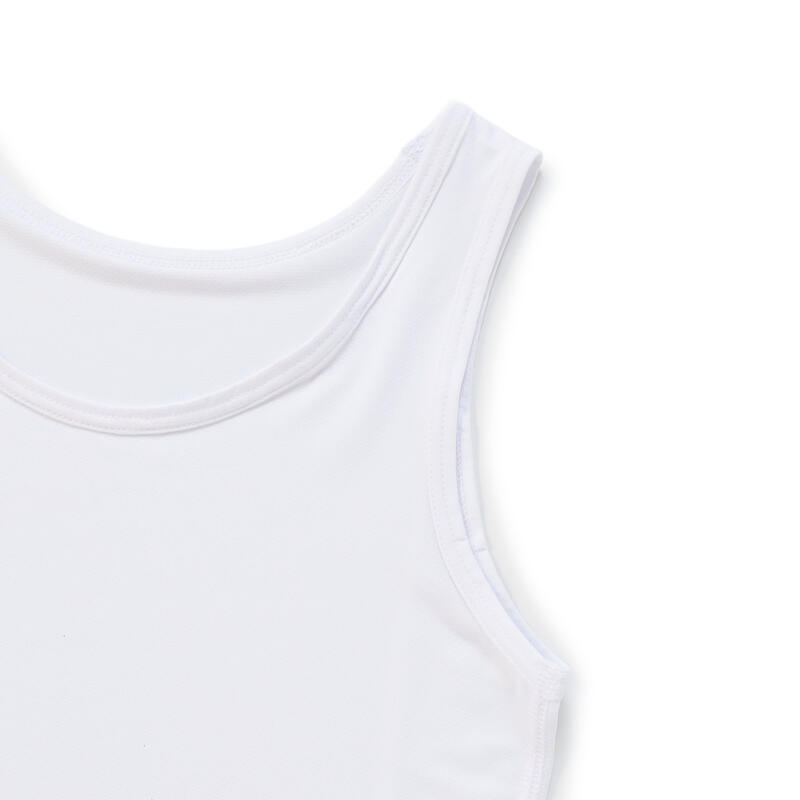 通気性の良いメッシュ素材を使用した女児用タンクトップ。