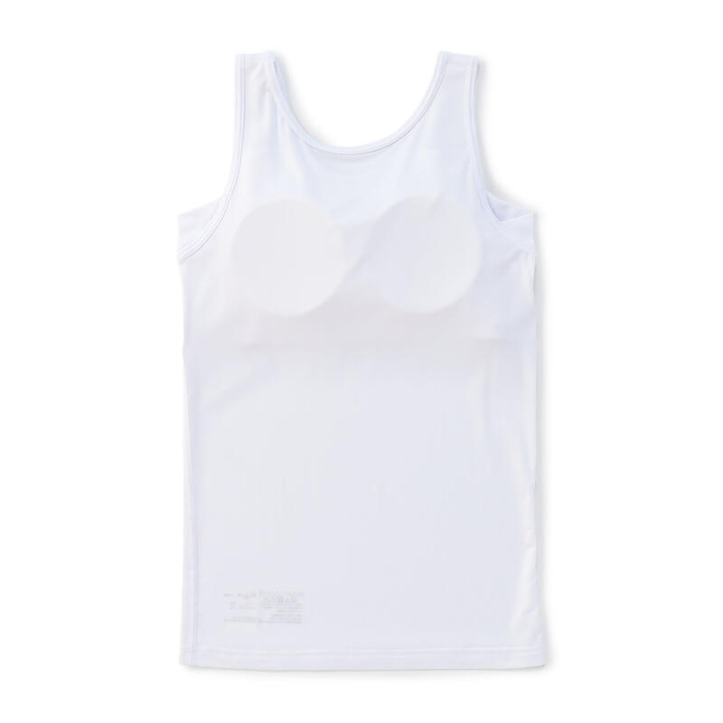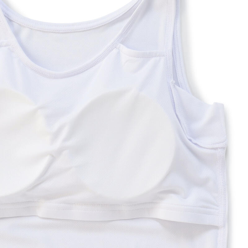 通気性の良いメッシュ素材を使用したカップつきタンクトップ。