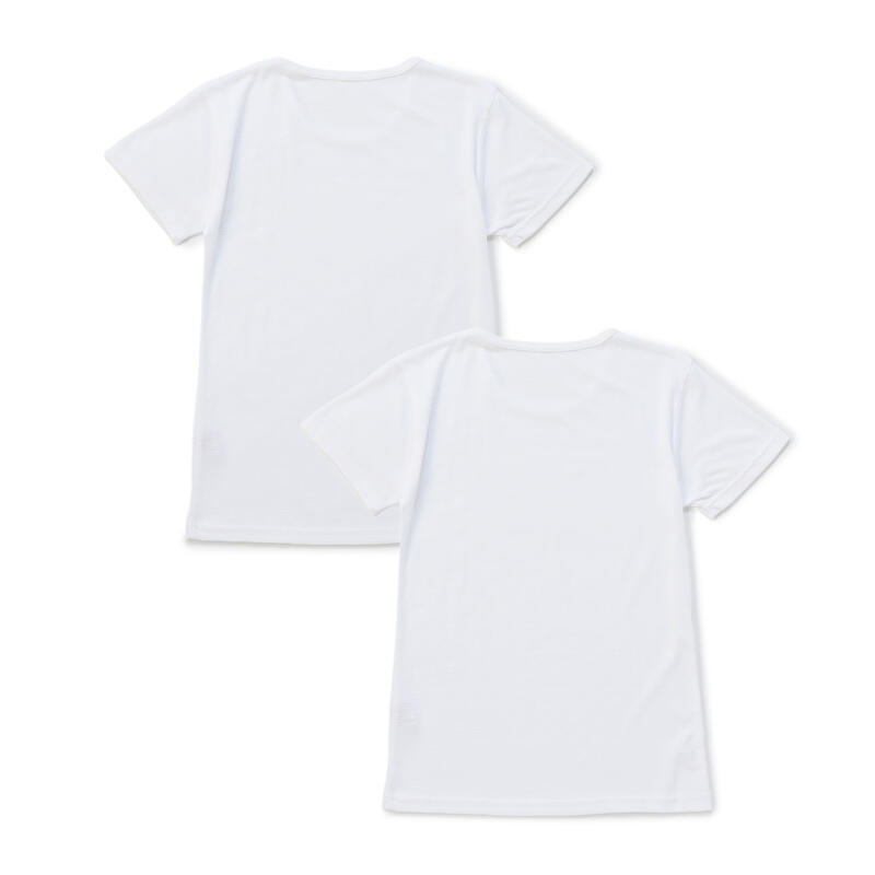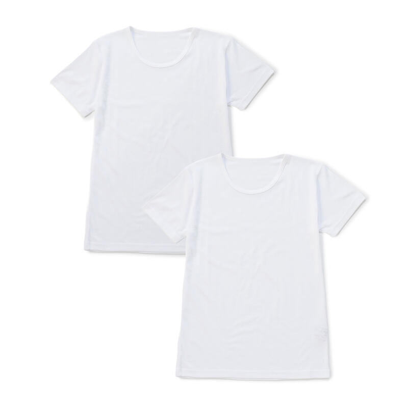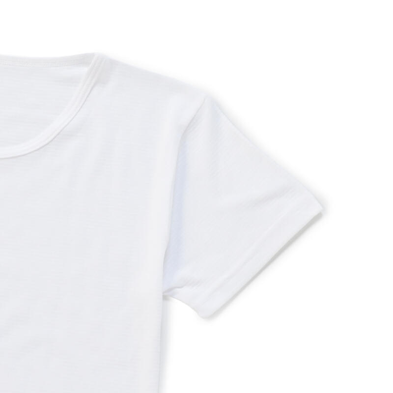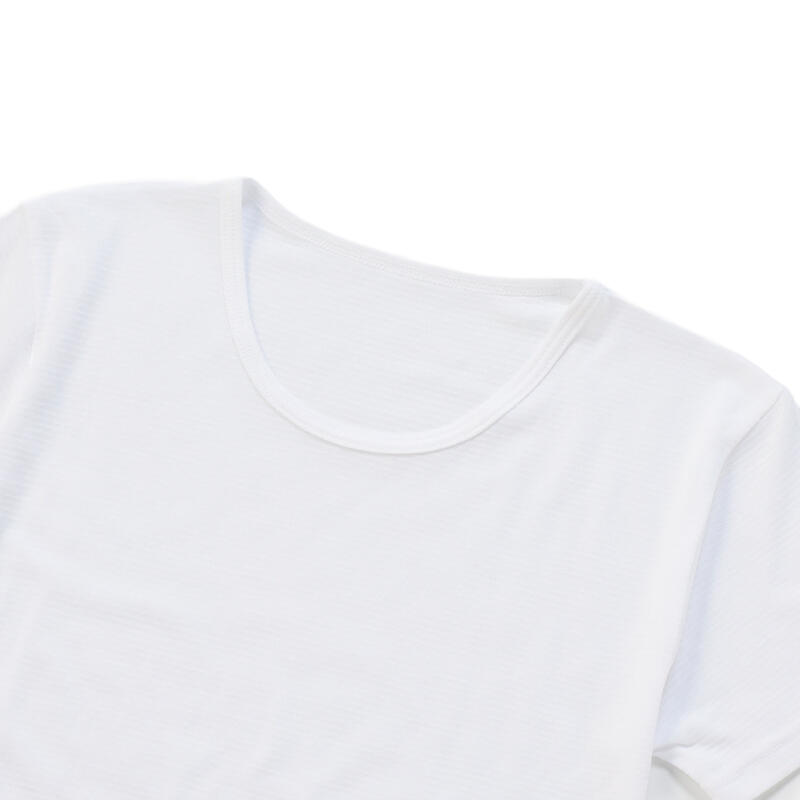通気性に優れた、さらっとした肌ざわりが心地良い丸首半袖インナー。