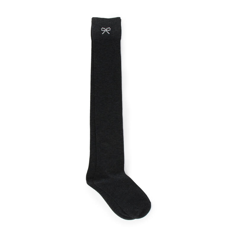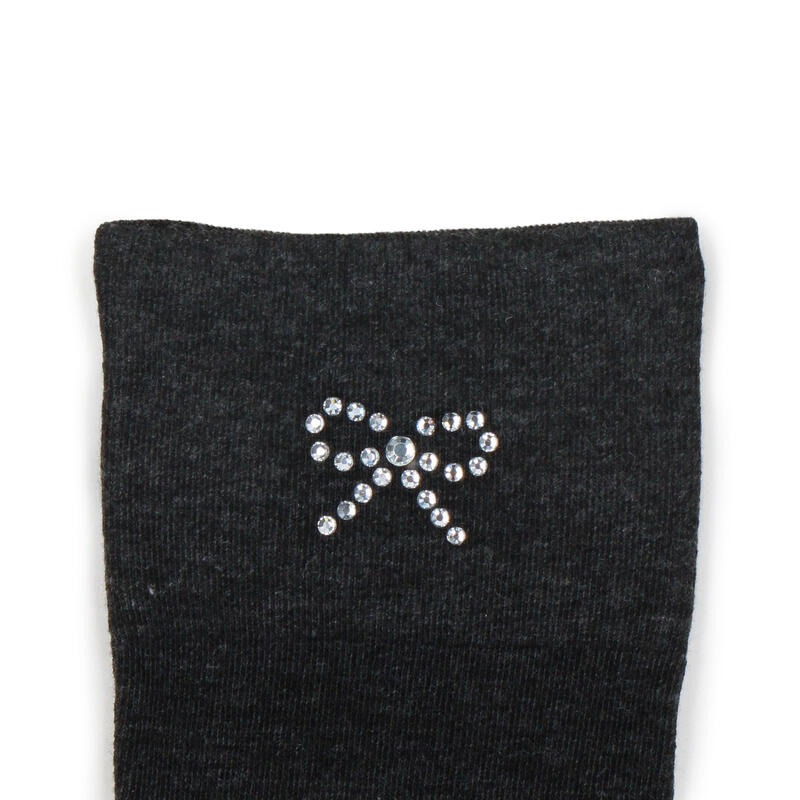 ラインストーンでリボンを入れているカワイイデザインのハイソックスです。