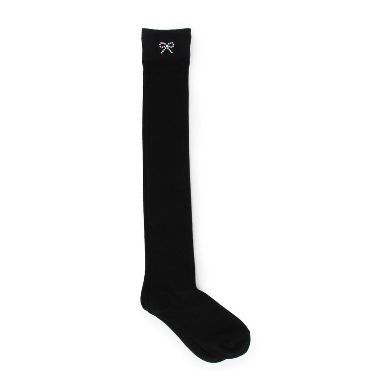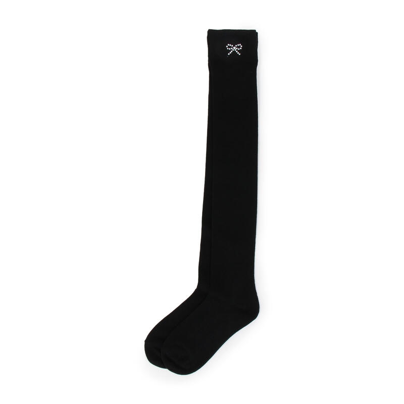 ラインストーンでリボンを入れているカワイイデザインのハイソックスです。