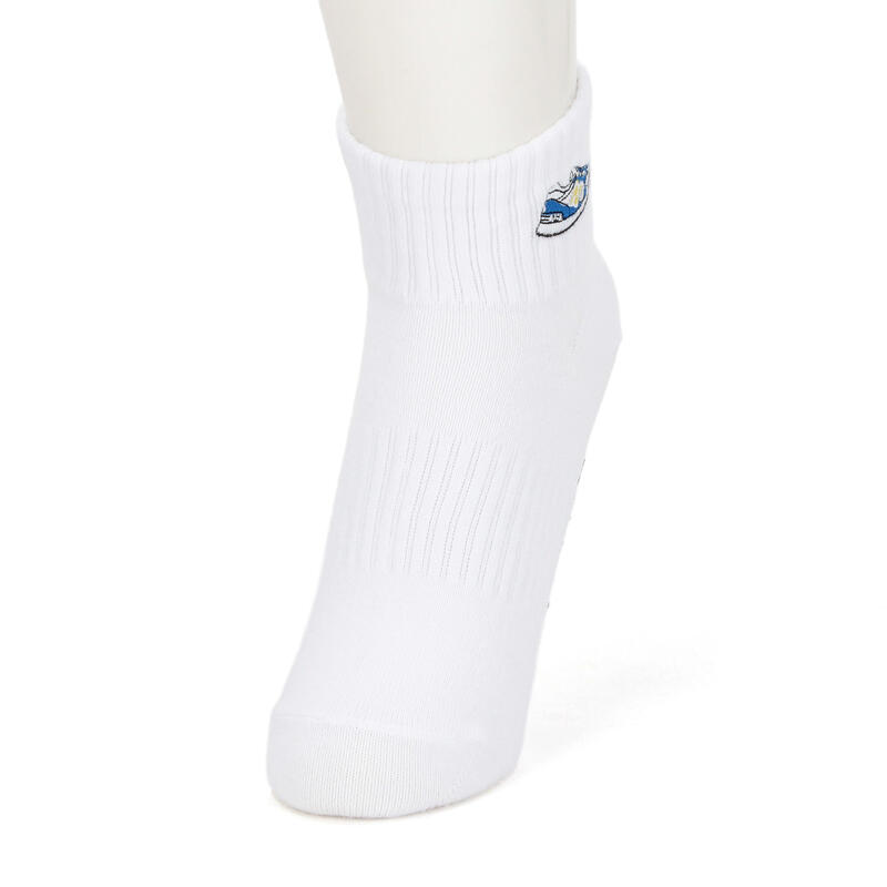 スニーカー柄の刺繍がデザインのポイント。ベーシックなカラーに刺繍が映えます。