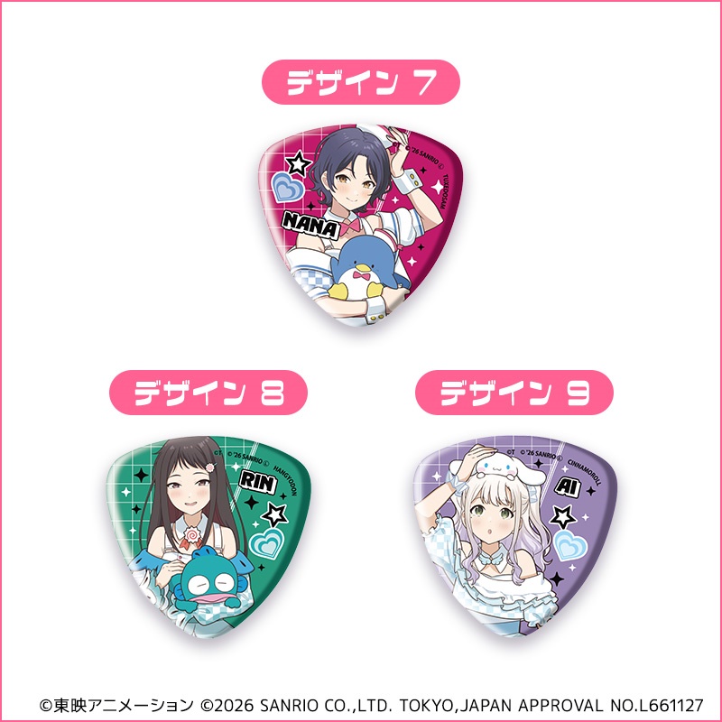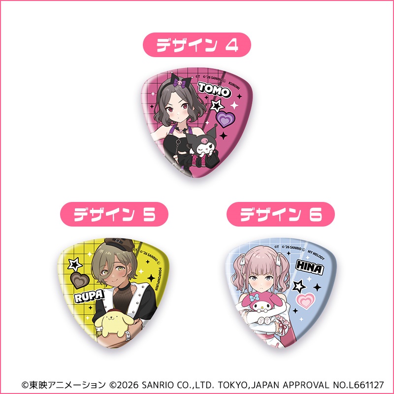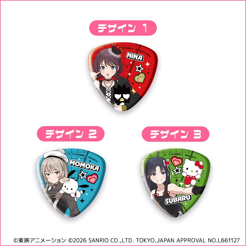 ピック型缶バッジ「ガールズバンドクライ サンリオキャラクターズ」01ブラインド(全9種) 等身デザイン