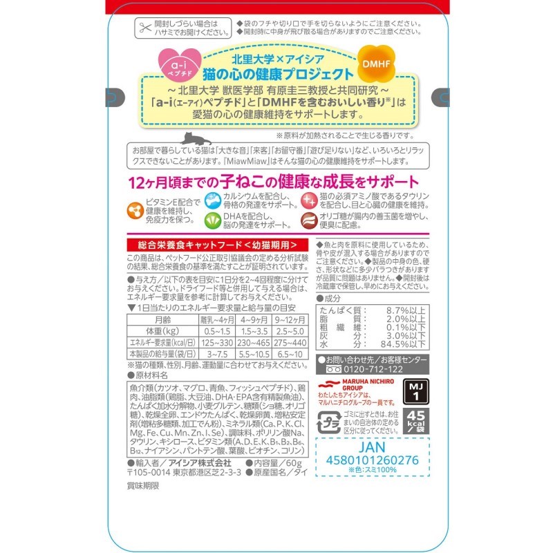 ・北里大学と共同研究した「a-iペプチド」と「DMHFを含むおいしい香り」が愛猫の心の健康維持をサポートします。
