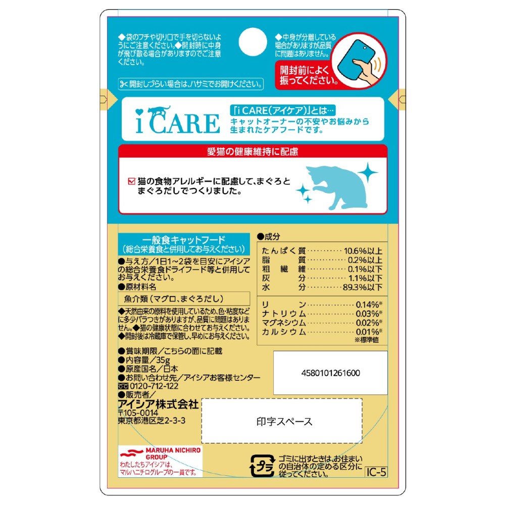 ・猫の食物アレルギーに配慮して、まぐろの単一たんぱく源仕立てのスープタイプのキャットフードです。