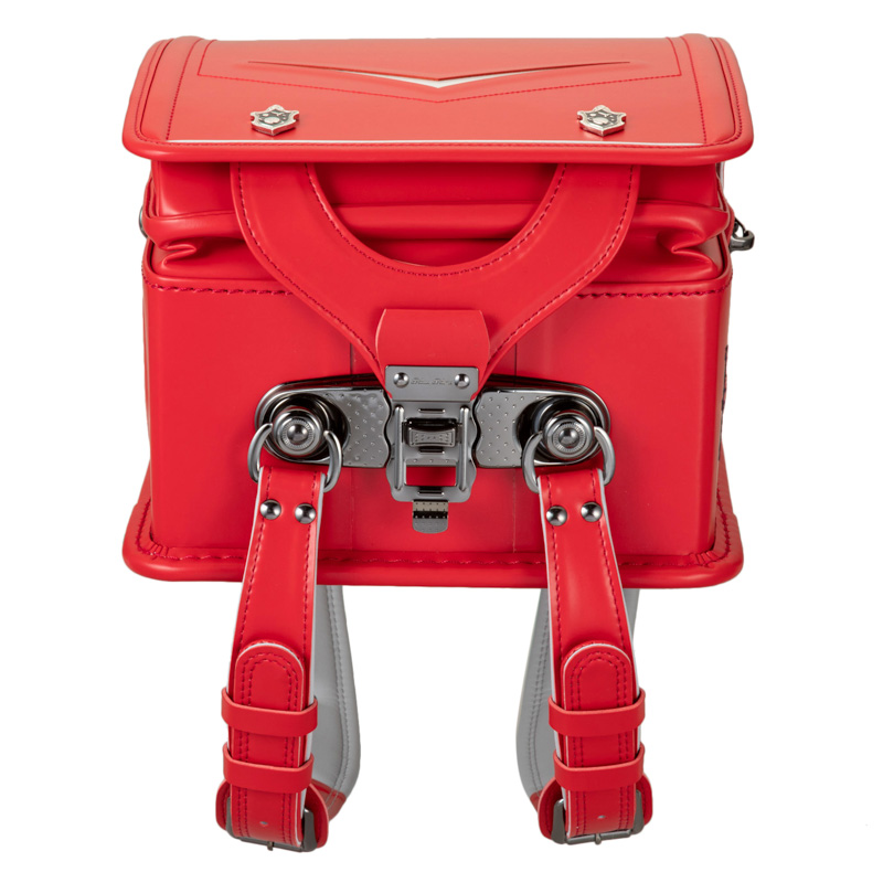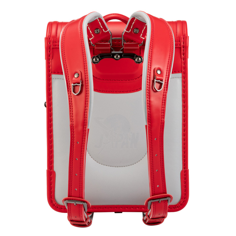 ●両肩ベルト エンブレムカン 防犯ブザー等を取り付けられるカンはエンブレム型です。