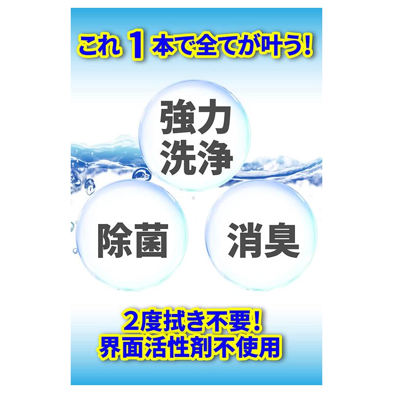 - 1本で洗浄、ウイルス除菌、消臭、防サビの4つの効果があります