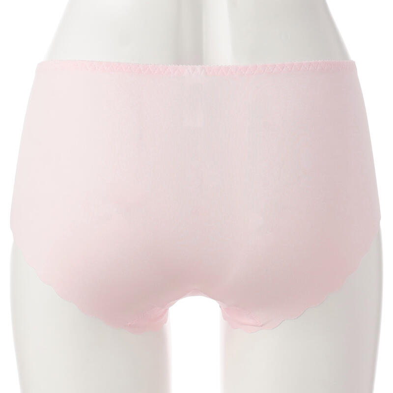 足口はなみなみカットのシームレスでアウターにひびきにくいショーツです。