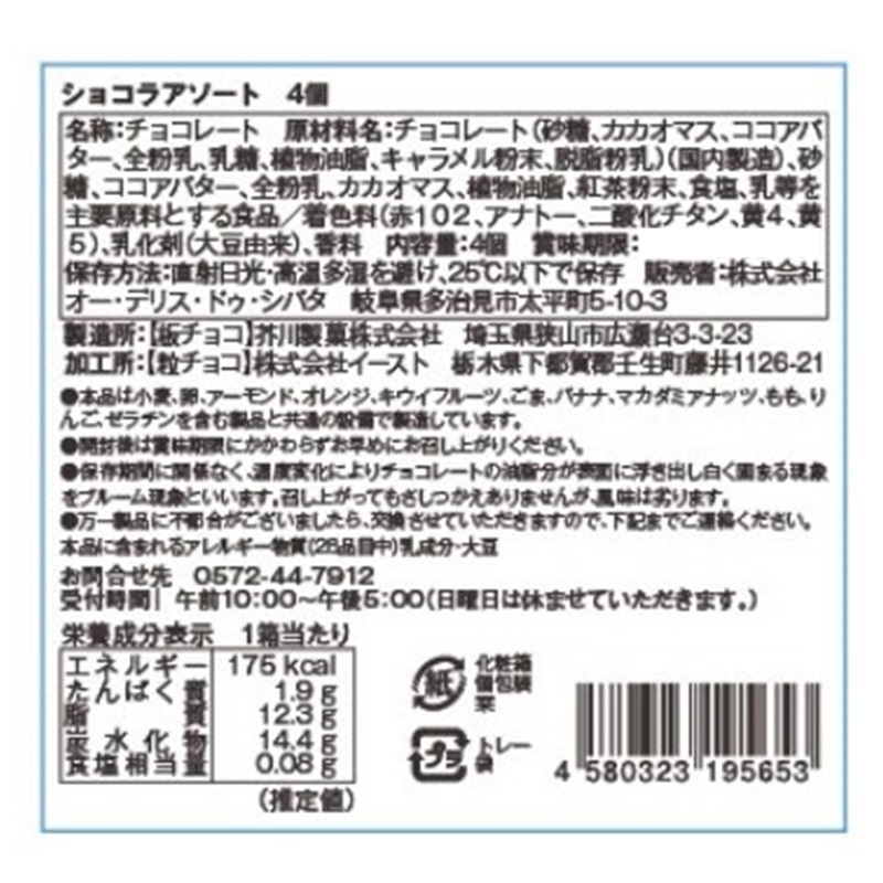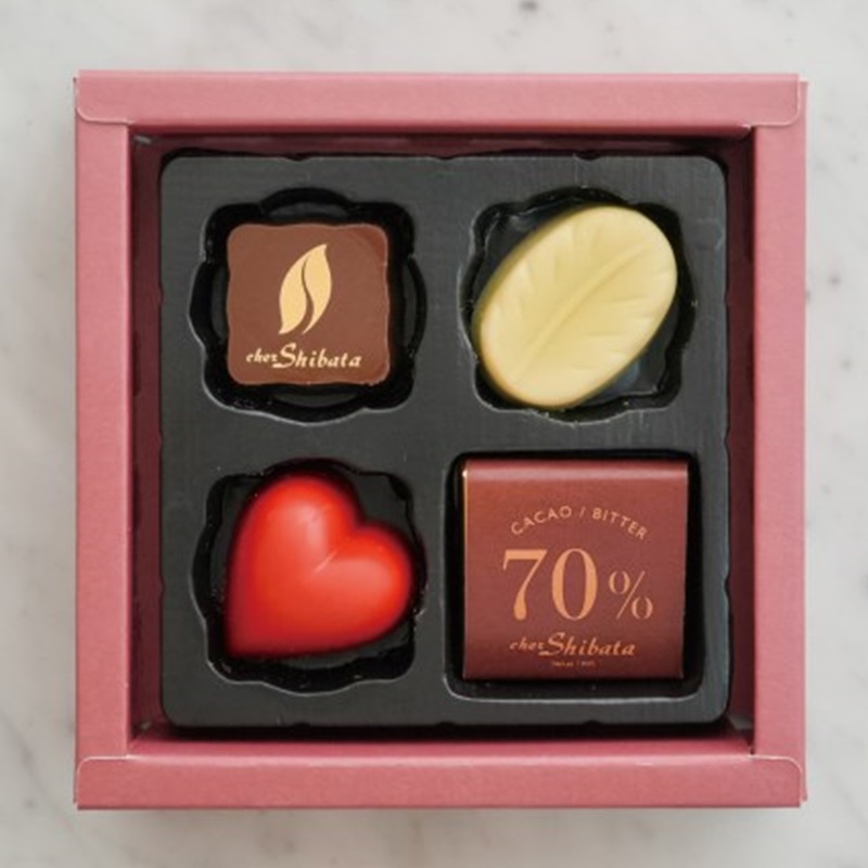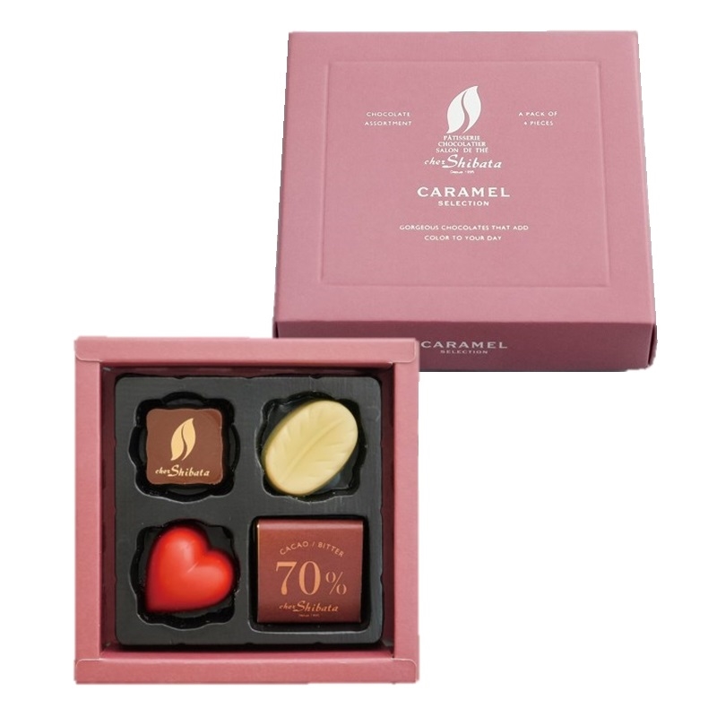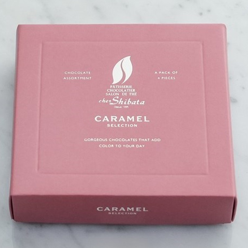 シェ・シバタ得意の「キャラメル」をテーマにした4種のショコラの詰め合わせ。