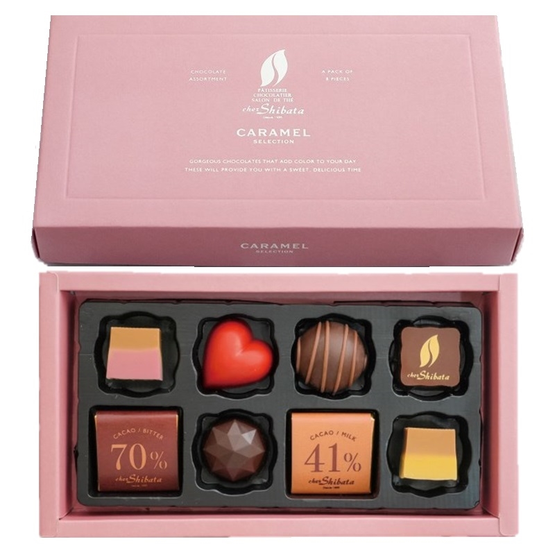 シェ・シバタ得意の「キャラメル」をテーマにした8種ショコラの詰め合わせ。