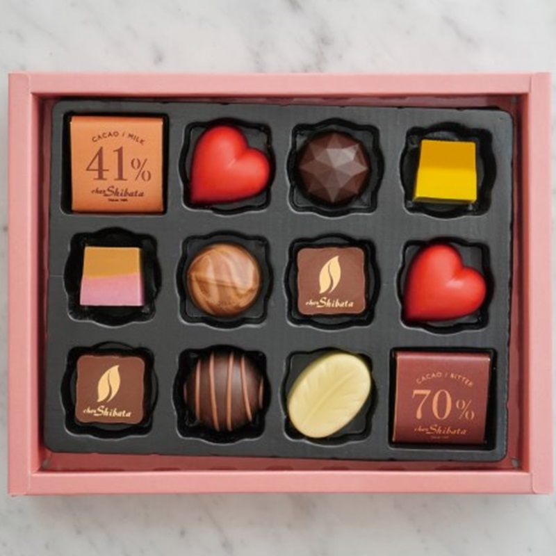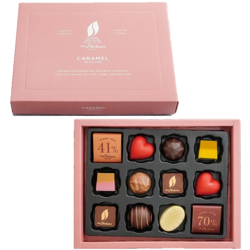 シェ・シバタ得意の「キャラメル」をテーマにした10種ショコラの詰め合わせ。
