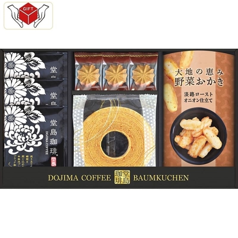 ●堂島珈琲ドリップコーヒー8g×3、ミルクバウムクーヘン×1、コーヒークッキー×3、