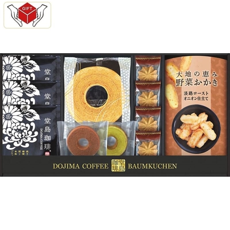 ●堂島珈琲ドリップコーヒー8g×3、ミルクバウムクーヘン×1、ミニバウムクーヘン(ベルギーショコラ)×1、