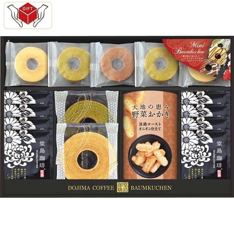 ●堂島珈琲ドリップコーヒー8g×8、ミルクバウムクーヘン×1、宇治抹茶バウムクーヘン×1、