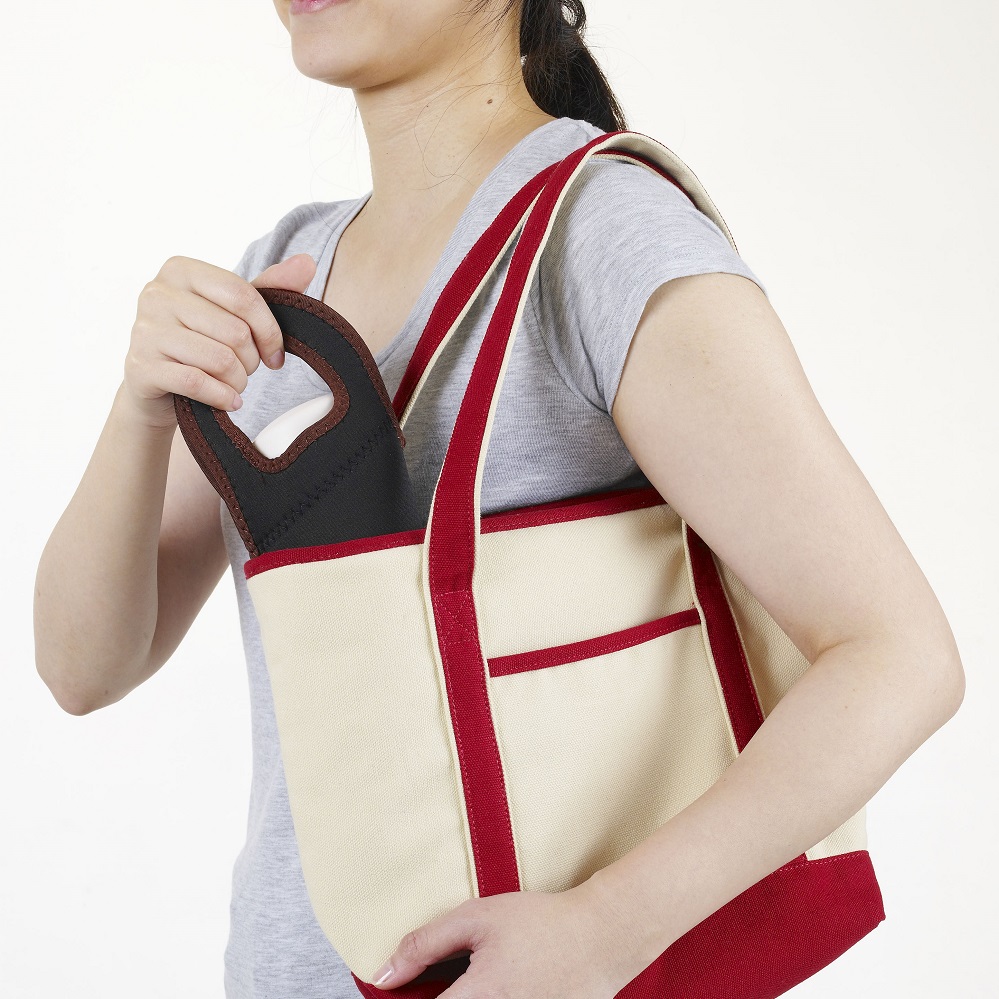800mlまでの大きいサイズのボトルの持ち運びに便利。本体にハンドベルトが付いているので片手でも持てます