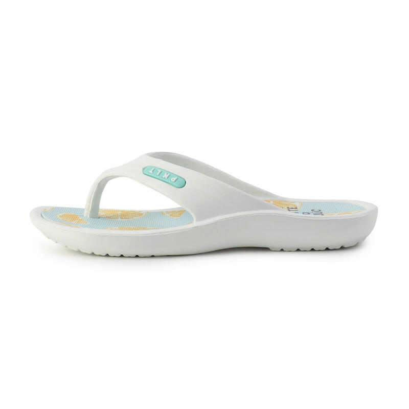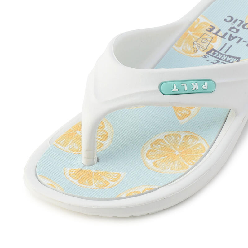 ソールのフルーツ柄で可愛さを効かせたインジェクションサンダル。