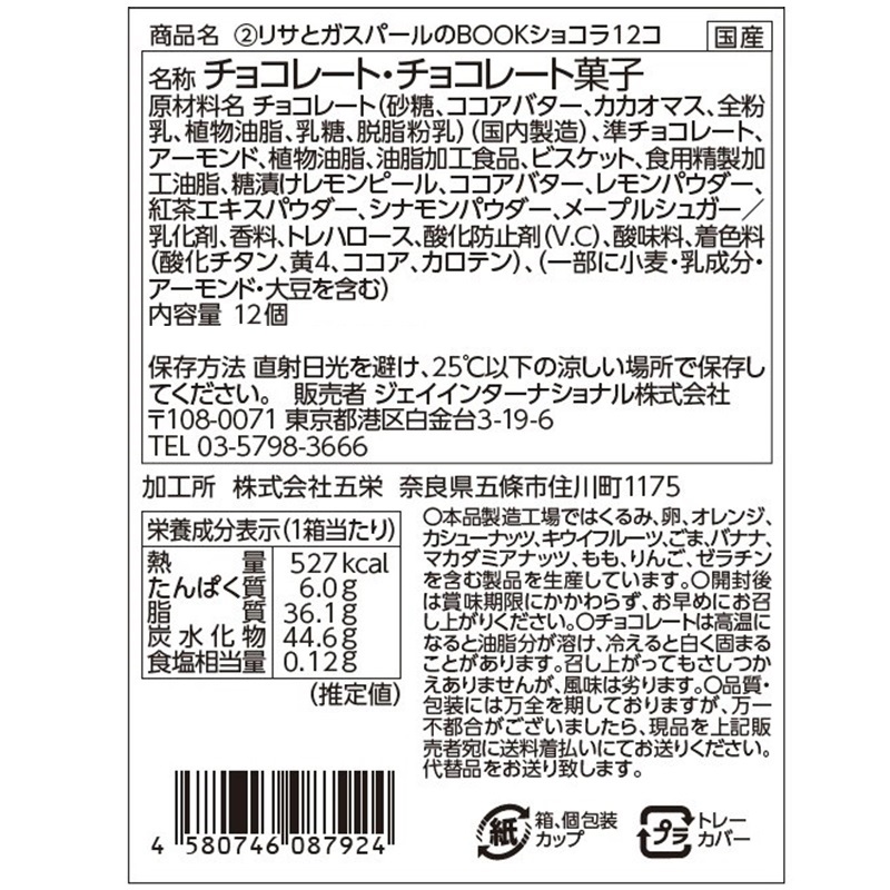 ブックデザインのパッケージにリサとガスパールのショコラ詰合せ