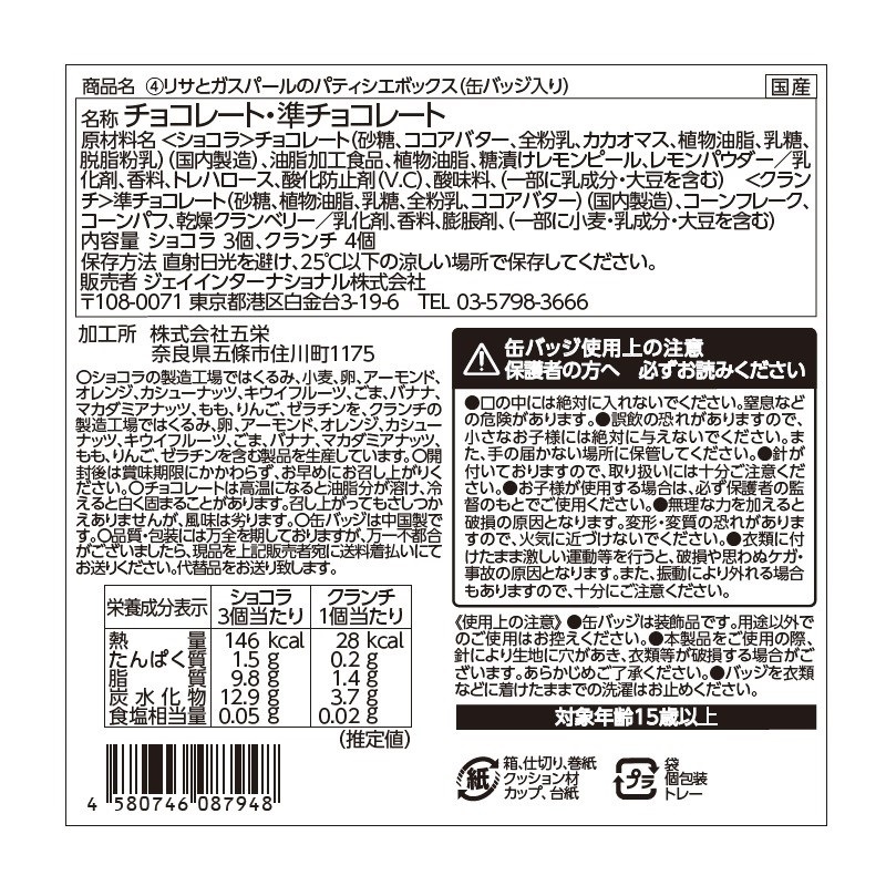ショコラとクランチショコラ、オリジナルデザインの刺繍缶バッジの詰合せ