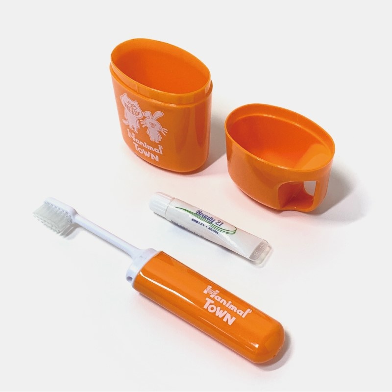 持ち運びできて歯磨き粉もついてくる可愛らしい歯みがきセットです